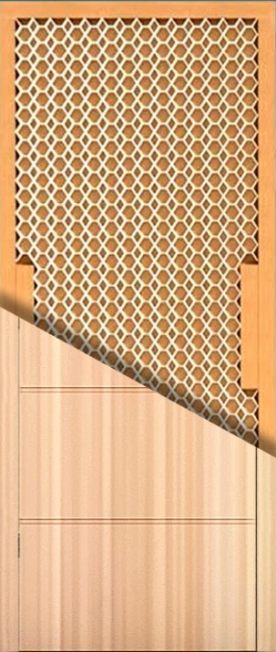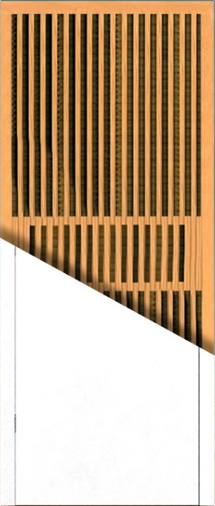 O interior tipo colmeia da porta é leve e resistente, proporcionando estabilidade e economia de material.