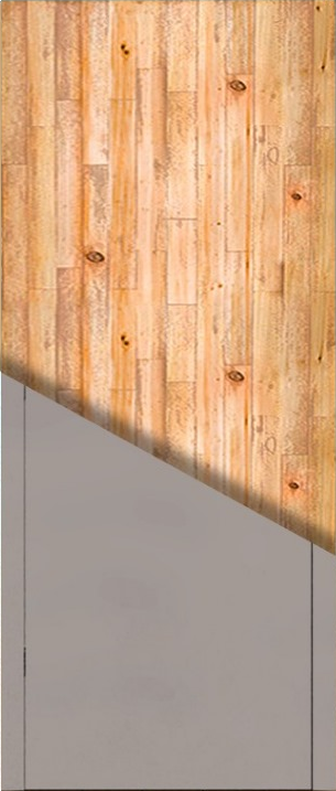 O interior sarrafado da porta é feito com ripas de madeira, oferecendo alta resistência e robustez estrutural.
